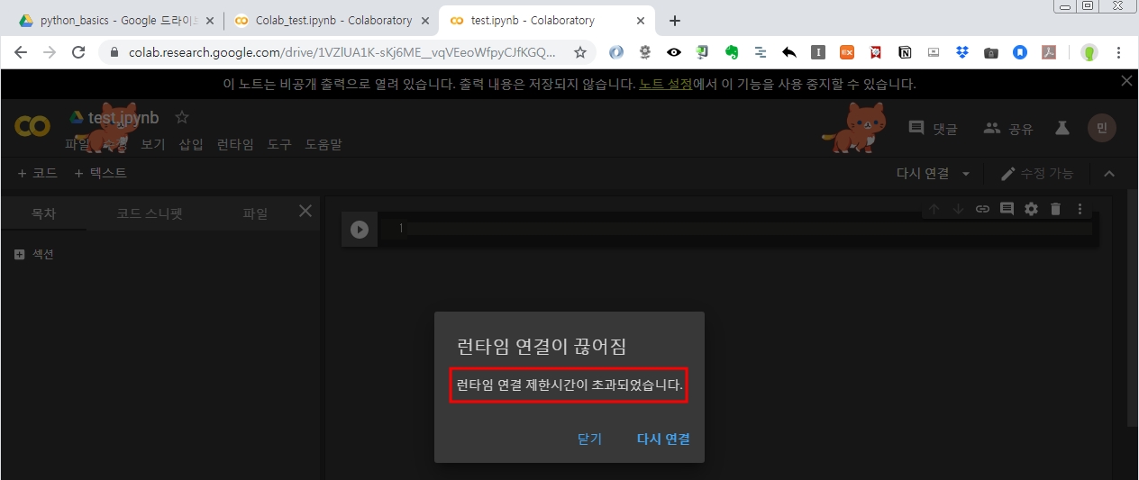 - 그럼 쓰면 안되는거 아냐? 소스코드는 .ipynd 확장자로 구글 드라이브에 안전하게 보관되므로 걱정할 필요없다.