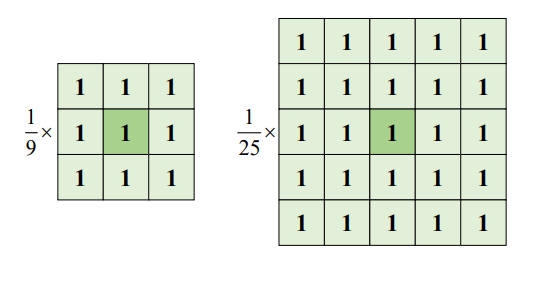 • 영상의 특정 좌표 값을 주변 픽셀 값들의 산술 평균으로 설정