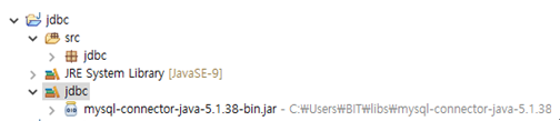 그러면 아래와 같이 프로젝트 폴더 아래에 라이브러리가 추가될텐데, 여기까지 진행했으면 JDBC를 사용할 준비가 된 것입니다.