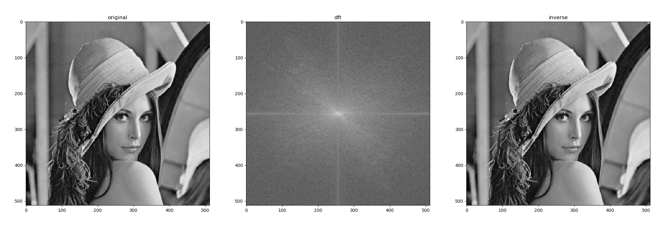 inverse_dft = cv2.dft(inverse_shift, flags=cv2.DFT_INVERSE)