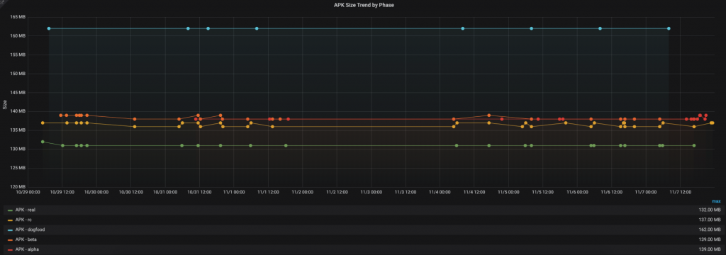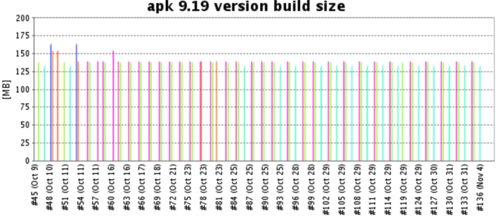 세계 각국에 사용자가 퍼져있는 LINE 메신저에서 패키지 크기의 증가는 매우 민감한 사항입니다. 통신 속도가 느린 환경의 사용자나 저사양의 모바일 기기를 이용하는 사용자는 용량이 큰 패키지를 꺼리기 때문입니다. 위 지표를 활용하면 갑작스러운 크기 변경에 대응할 수 있고, 내부적으로 진행되는 작업에 정량적인 데이터를 활용할 수 있습니다.