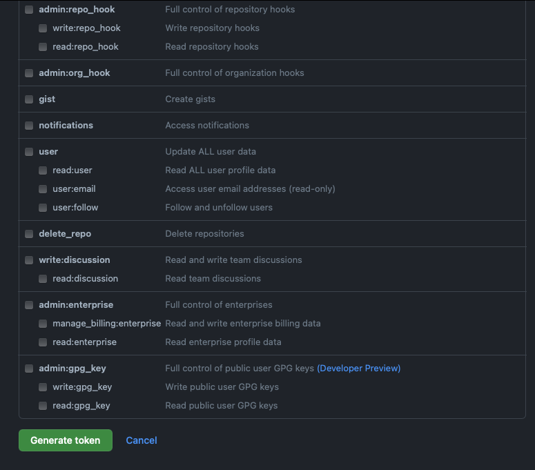 설정을 마쳤으면 Generate token을 클릭해서 생성해줍니다.