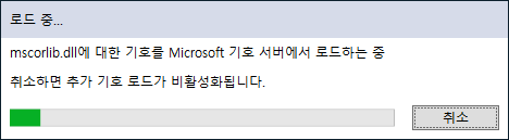 Visual Studio에서 프로젝트 디버깅 시(F5) 다음과 같이 ‘Microsoft 기호 서버에서 로드하는 중’ 이라는 내용이 뜨면서 디버깅 시간이 오래 걸리는 경우가 있습니다.