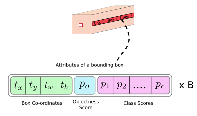 - 𝑝1,𝑝2,...,𝑝𝐶는 경계상자가 클래스 1, 2, ..., C의 객체를 포함할 확률