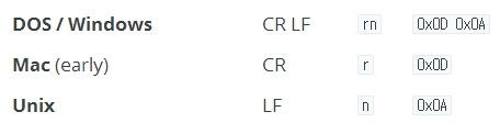 보통 윈도우의 줄바꿈은 /r/n 페어로 끝납니다. 하지만 다른 OS들, 맥이나 유닉스는 /r, /n 등 하나의 형으로만 이루어져 있다.