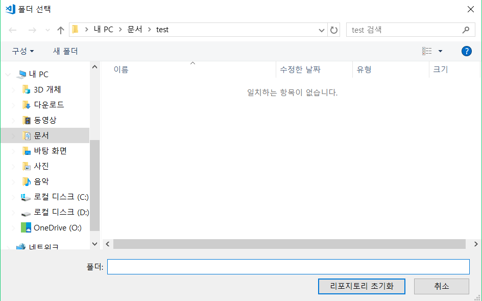 이렇게 나오면 리포지토리 초기화를 누른다.
